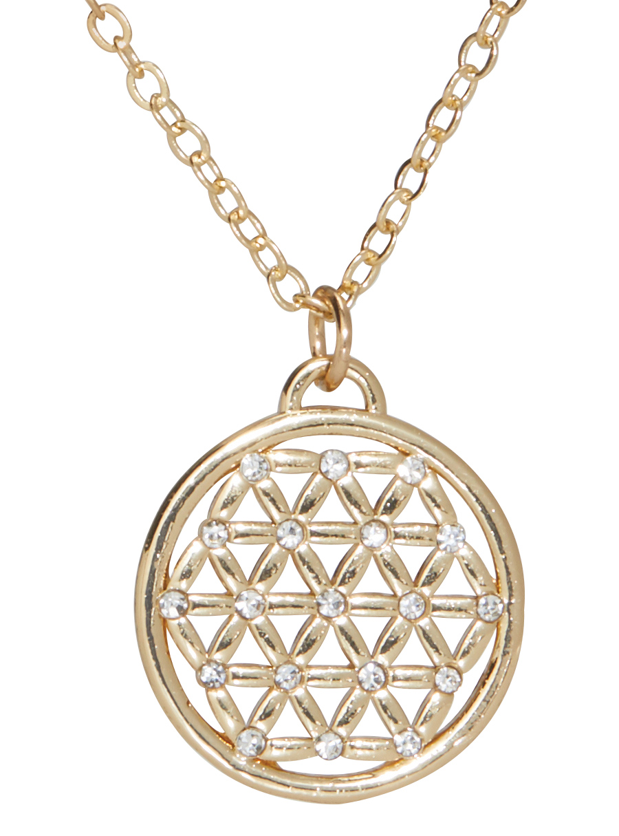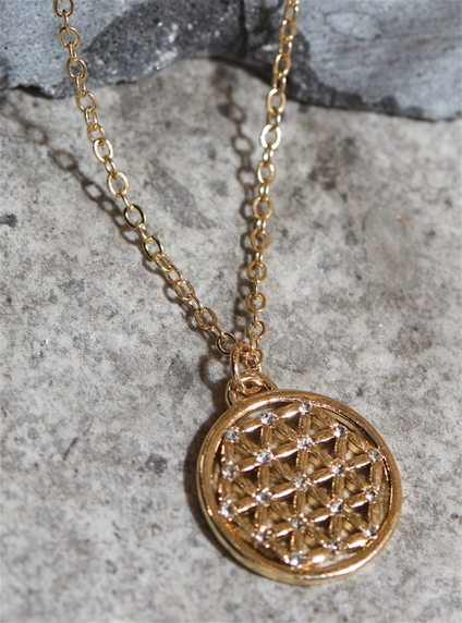 Make an elegant statement with this stunning gold tone necklace with a pendant adorned with glittering accents. Length: 45cm with 7cm extension chain.