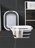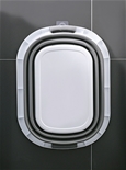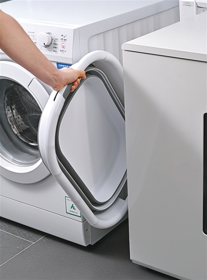 Most laundry baskets are inconvenient essentials – they take up so much space! This one solves the problem with an ingenious design that makes it incredibly easy to store. When you’re not using it, it collapses down from a roomy 24.5H x 54W x 39D cm to just 7 cm deep so you can pop it on to a shelf or slide it away in a narrow space. It’s made from easy-clean plastic and rubber in contemporary grey and white stripes. Props not included.