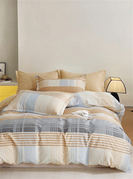 Australian designed 100% high quality Cotton Quilt Cover set, in a soft tone Hampshire check design. Each set includes quilt cover and 1 pillowcase for Single and 2 pillowcases for Double/Queen. 100% Cotton.