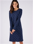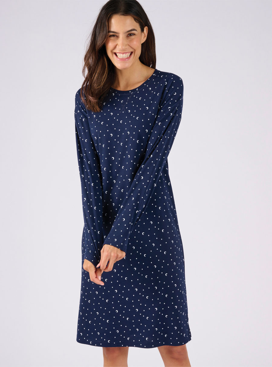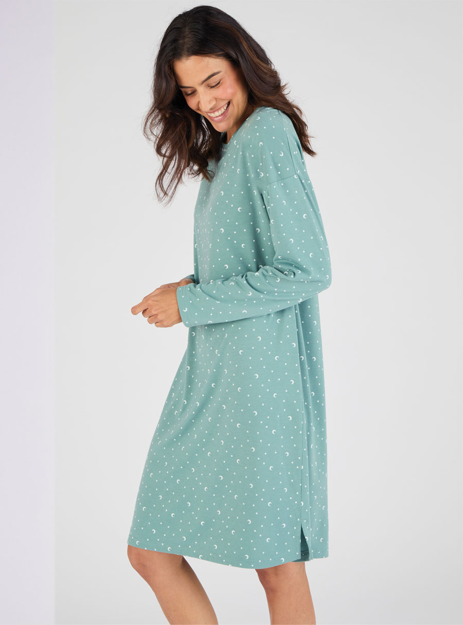 Thermolactyl nightdress in soft recycled polyester with star print, long sleeves, round neck and cosy side slits. Polyester, Viscose.