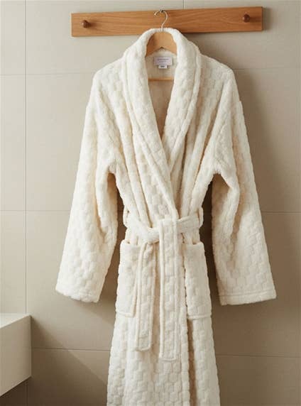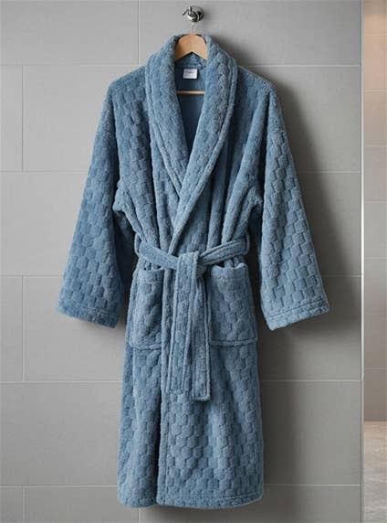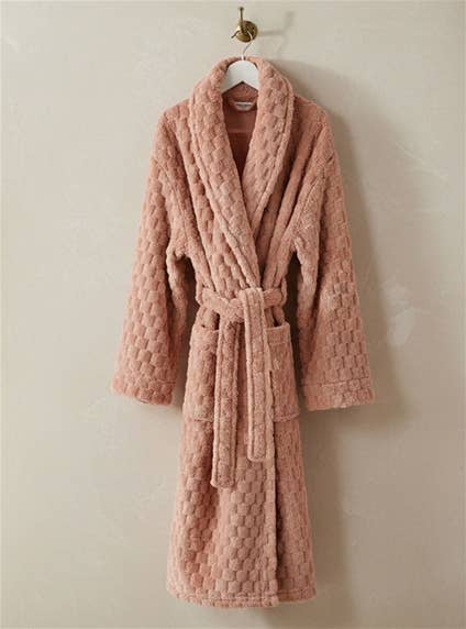 Plush texture robe with pockets and belt. Polyester.
