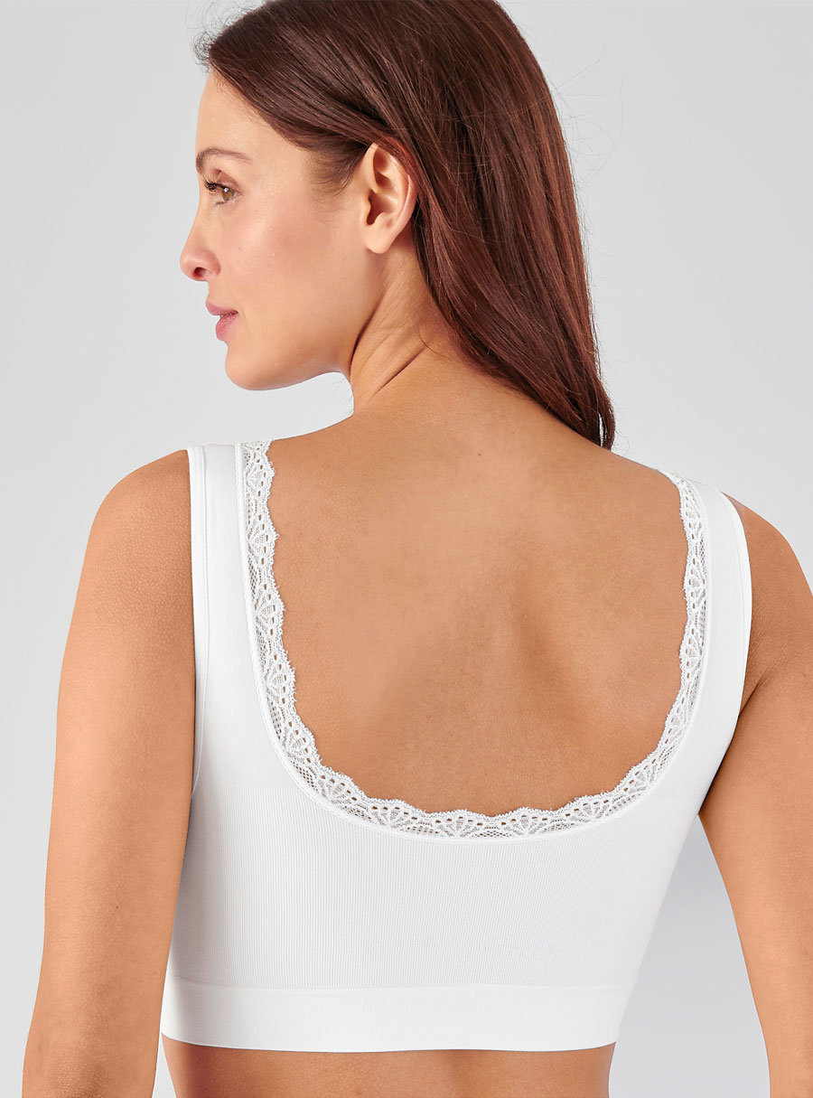 This bra offers support with a wide under bust band, soft stretchy knit and removable ampliform foam shells. Seamless, feminine lace details, wide comfort straps. Pack of 2. Polyamide, Elastane