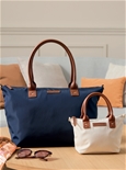 Both versatile and chic, this thoughtfully designed twin set of bags are ready to fulfill your needs. Both bags have zip closure, the smaller bag has a removeable adjustable strap. Large bag measures: 49cm x 23cm x 14cm. Small bag measures: 23cm x 14cm x 8cm. 100% Polyester, PVC Trims.