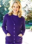 Long sleeve button front cardigan with patch pockets and chunky knitted design. 100% Acrylic.