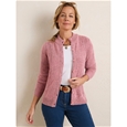 Cosy up with this beautifully knitted ornate cable cardigan. A full button up front, mock neck and two front patch pockets. This cardigan is decorated with delicate knitted cables for a stylish touch. 100% Acrylic (Ecru Mottled); 90% Acrylic, 10% Polyester (Duck Egg, Rose).