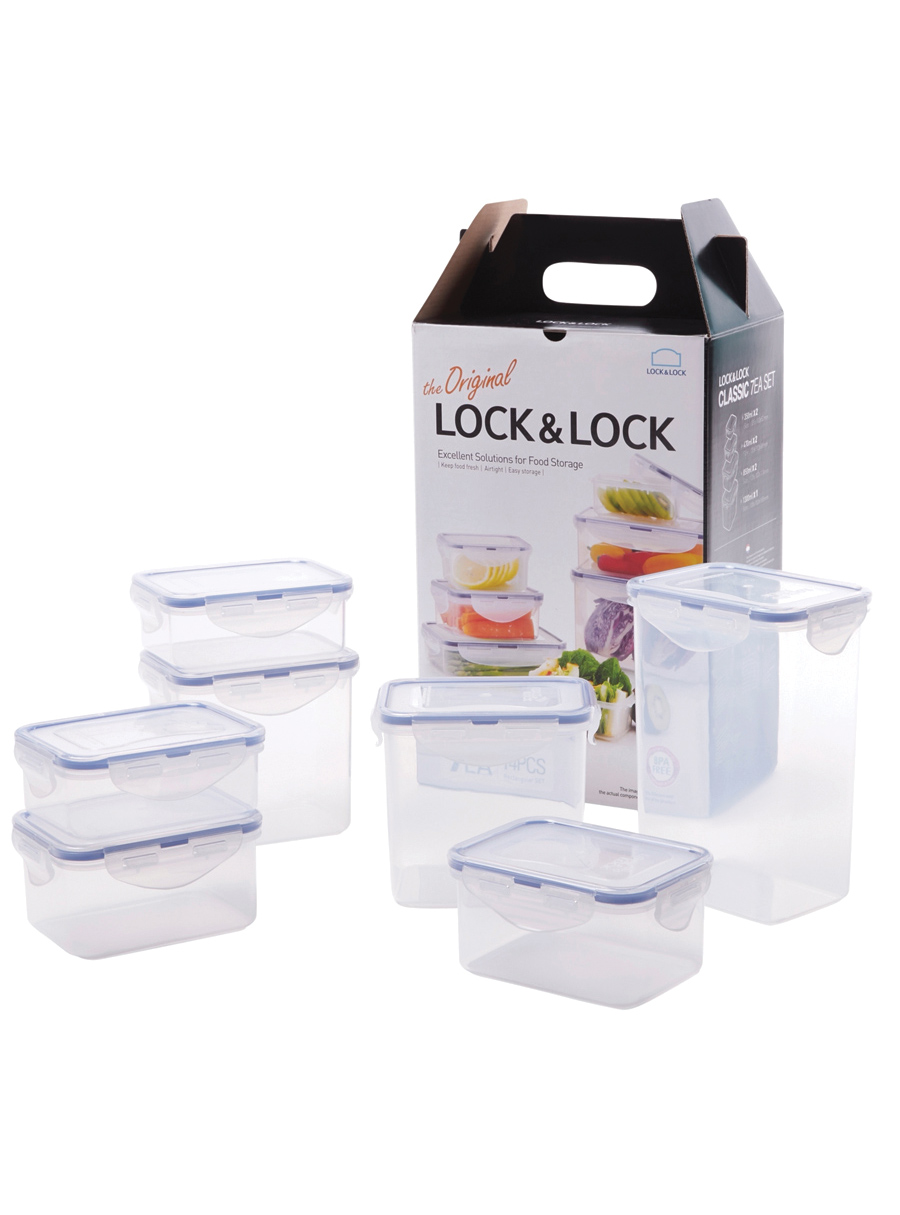 The Lock&LockTM Classic 7-Piece Set offers airtight, leak-proof food storage with a patented four-hinge locking system and silicone seal. Durable and resistant to impact, heat, stains and scratches, these containers keep food fresher for longer. Perfect for organising meals, snacks and pantry items at home or on the go. The set includes 2 rectangular containers each of 350ml, 470ml, 850ml and 1 rectangular container of 1.3L.