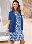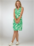 Breeze through warm days in this fresh linenblend shirt dress, featuring a sleeveless cut, lightweight and breathable - it’s designed with a relaxed fit that’s perfect for effortless everyday style. 70% Viscose, 30% Linen. Cardigan not included.