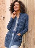 This long cardigan in an intricate cable knit pattern is your trendy companion. The warm stand-up collar with button and the button placket are ribbed, as are the trims on the long sleeves and the hem with rounded side slits. 2 patch pockets. 60% Cotton, 40% Acrylic.