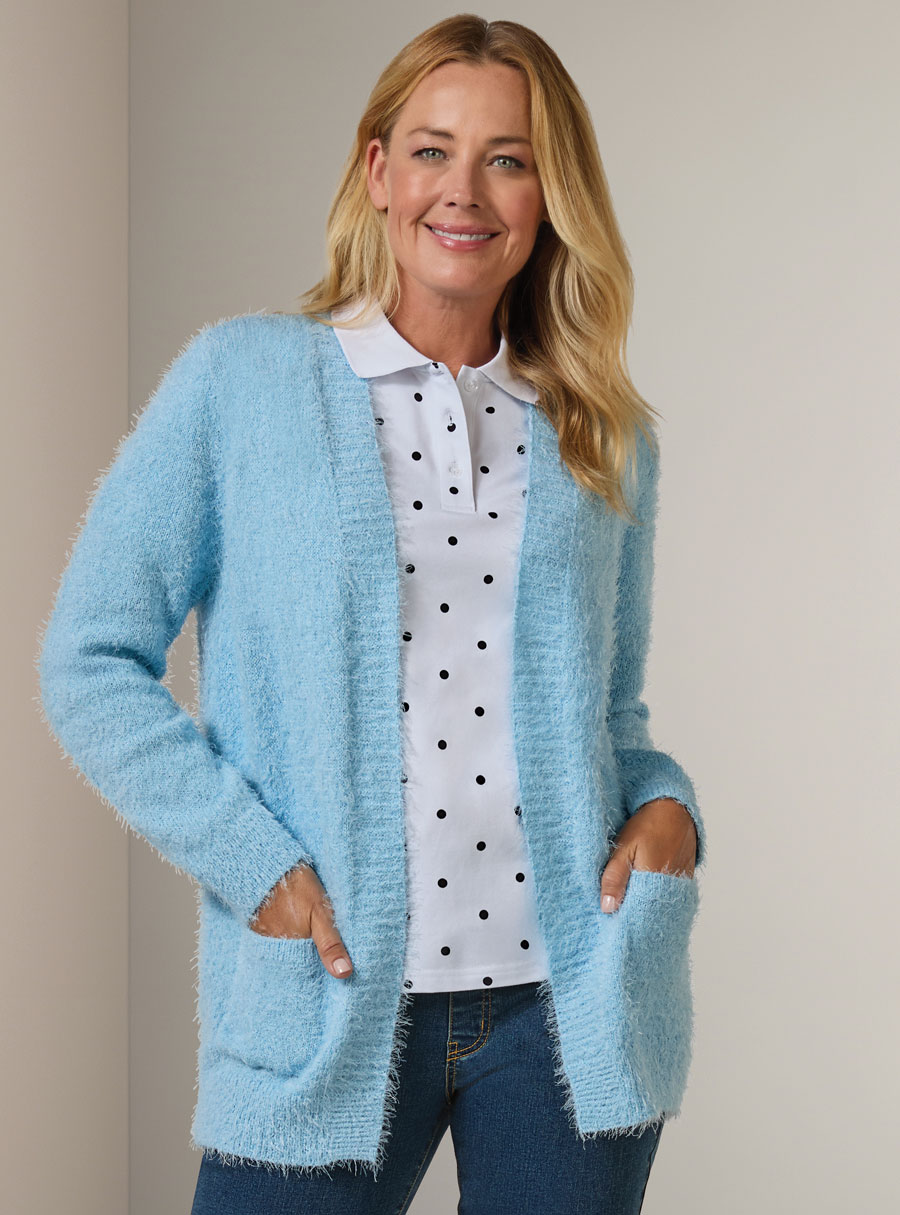 Indulge in cloud‑soft comfort with our Long Sleeve Feather Cardigan - the perfect blend of texture, warmth and effortless style. Crafted from a luxuriously soft feather‑knit fabric, this cardigan offers a cosy feel and a beautifully relaxed drape, ideal for layering through the cooler seasons.