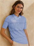 A casual and sporty polo in a pretty pointelle knit. This top has a short button placket and polo collar. Short sleeves and made in a cotton mix for comfortable all day wear. Featuring a lovely pointelle knit for design. 83% Cotton, 17% Nylon.