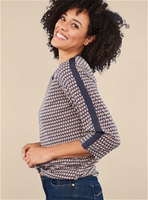 Fall in love with this hearts blouse in an attractive all over print. A shirt collar with open V and full-length button placket with colour coordinated buttons. A subtle A-line silhouette with a slightly rounded hem and ¾ length sleeves with button cuffs. 100% Viscose.
