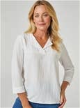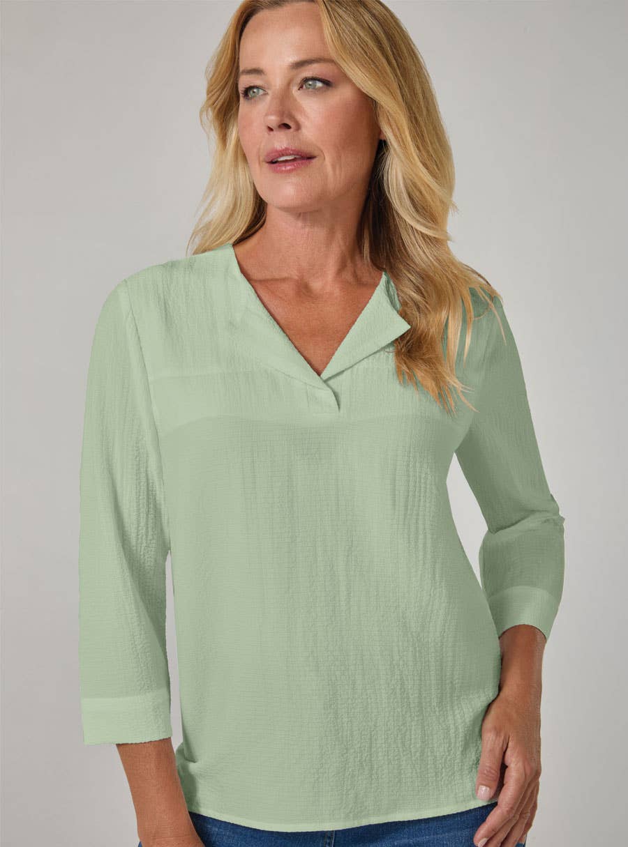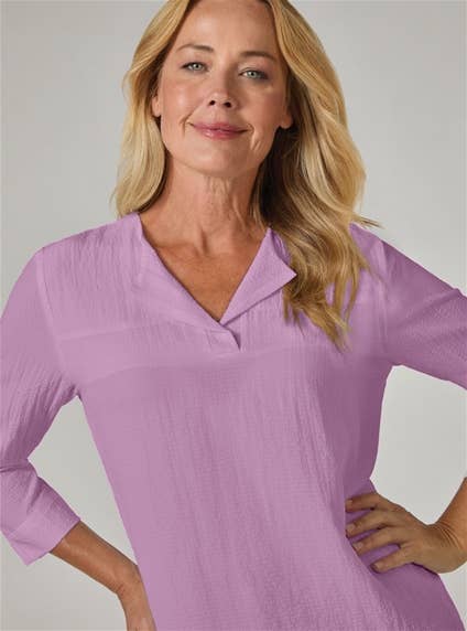 Easy pull-on 3/4 sleeve blouse with light stretch for a comfortable fit. Polyester, Elastane.