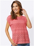 Easy-care ajour sweater in an airy all-over knit pattern. With a round neckline and fashionable dropped shoulders. Ribbed cuffs on the short sleeves and hem. 100% Acrylic.