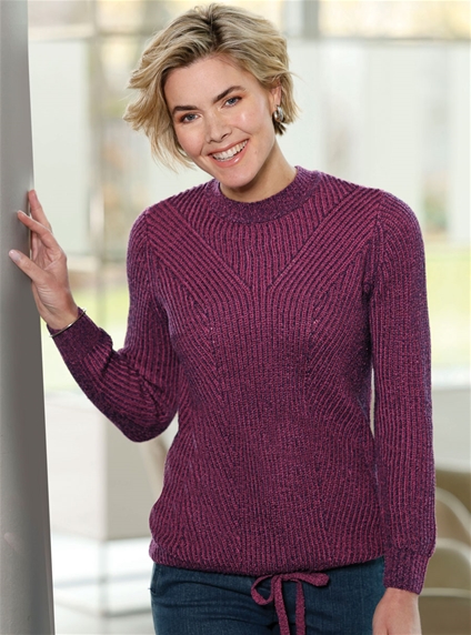 With an effective knitted texture: sweater in bouclé fabric. Ribbed sleeve cuffs with elasticated yarn. Drawstring and tie at the hem. Knitted in shape to fit.