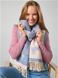 Reversible pashmina with soft fringe detailing, a delicate, elegant finish.