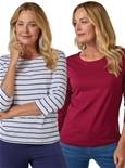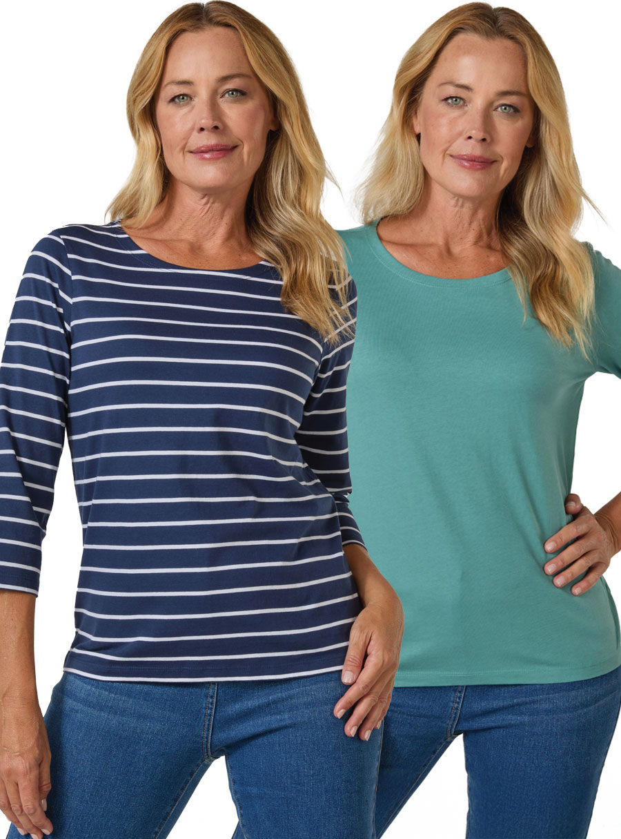 Enjoy our new cotton multi-pack ¾ sleeve tees, combining stripes and solids – perfect for mixing and matching in everyday wear. 100% Cotton.