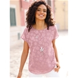 Stay stylish with this pretty printed tunic. In flowing viscose, this top has a high round neckline with gathers and a V. ¾ length sleeves with elastic cuffs. 100% Viscose.